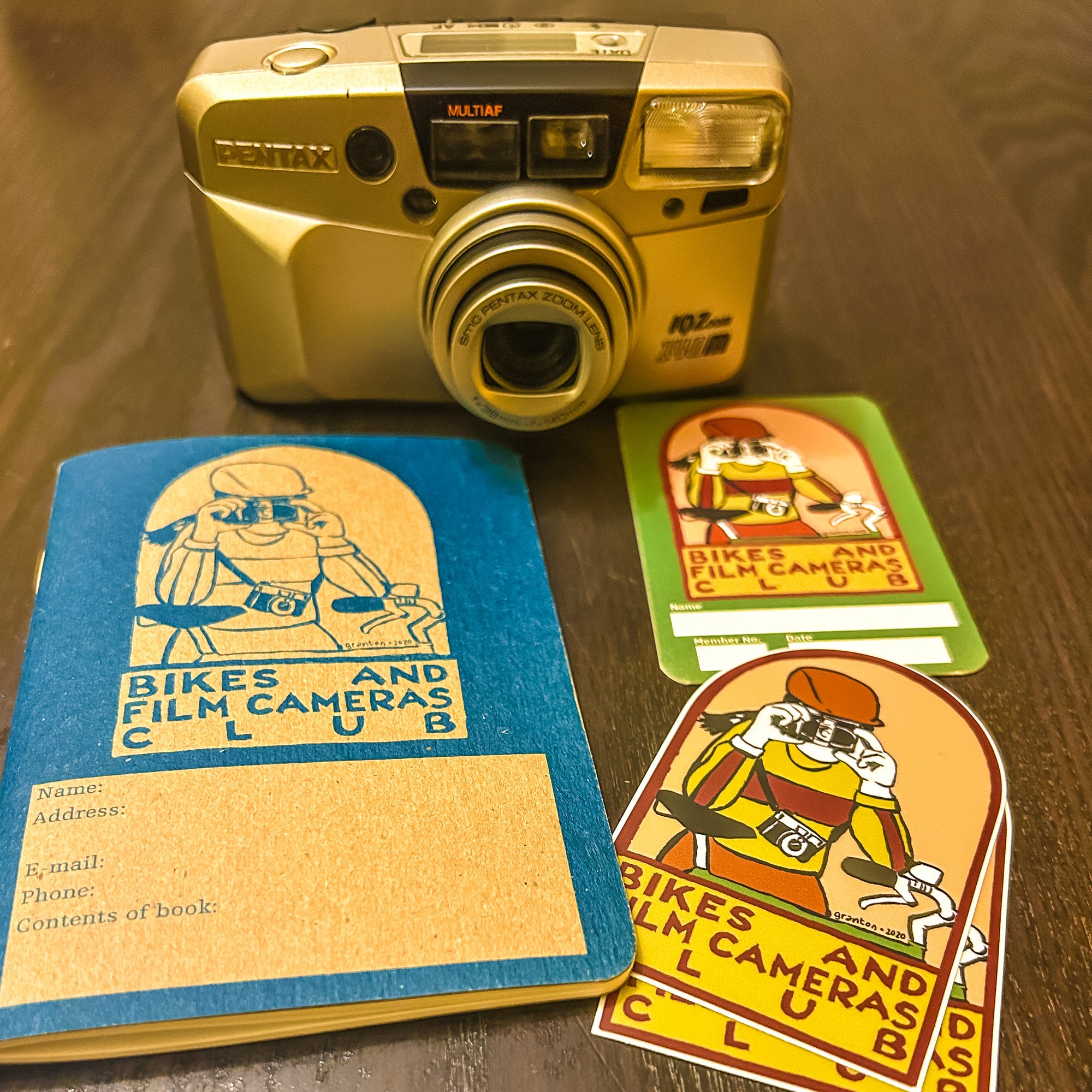 Bikes and Film Cameras Club WITH Pentax IQZoom 140M 35mm Camera